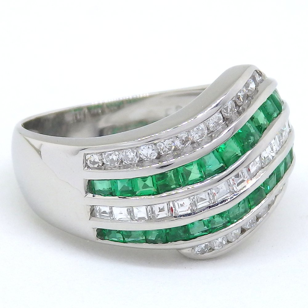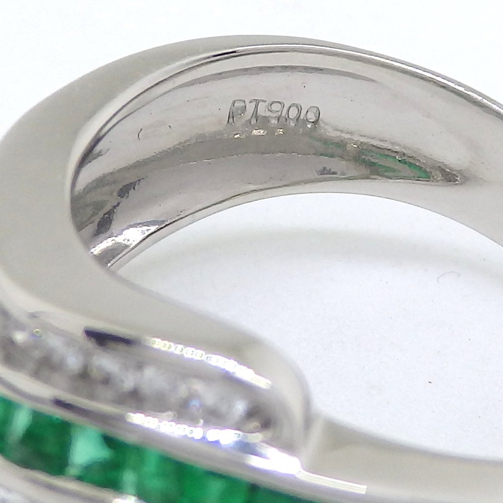 ☆エメラルドとダイヤの交互に埋め込まれたデザインです。幅があるので、存在感あり上品で高級感のある指輪です。