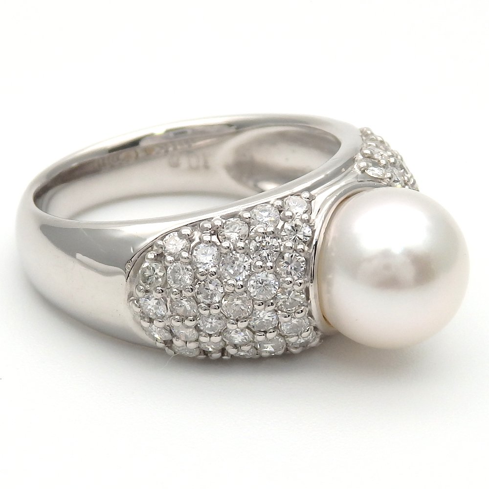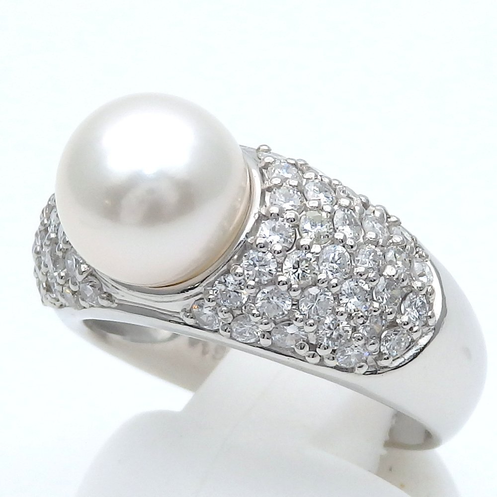 ☆冠婚葬祭・パーティーなど、どんな装いにも合うパールジュエリー、両脇のダイヤがしっかり埋め尽くされ豪華なリングです。