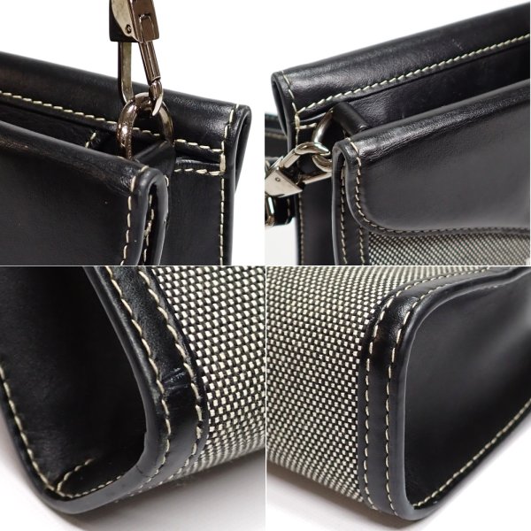 *程度B キャンバス部分の薄汚れ・ヤケが少々あり・レザーのスレ・金具のくすみ・内側のレザーにスレ傷など使用感あります。催事や店頭展示により細かな程度の違いにはご了承ください。