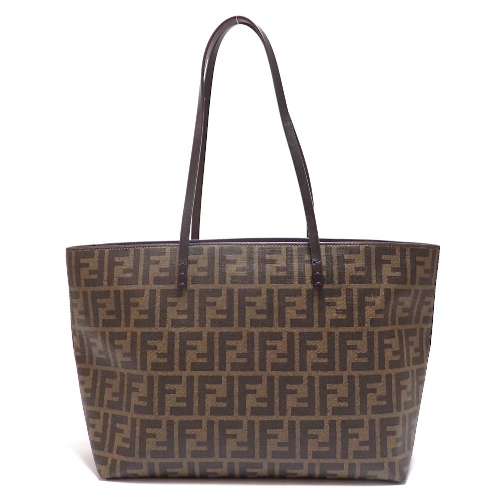 【FENDI】フェンディ ズッカ柄 トートバッグ 8BH198 PVC レザー 美品 レディース ショルダーバッグ 肩掛け ブラウン パープル 中古 ショッピング ロール バッグ A4サイズ 書類 質屋