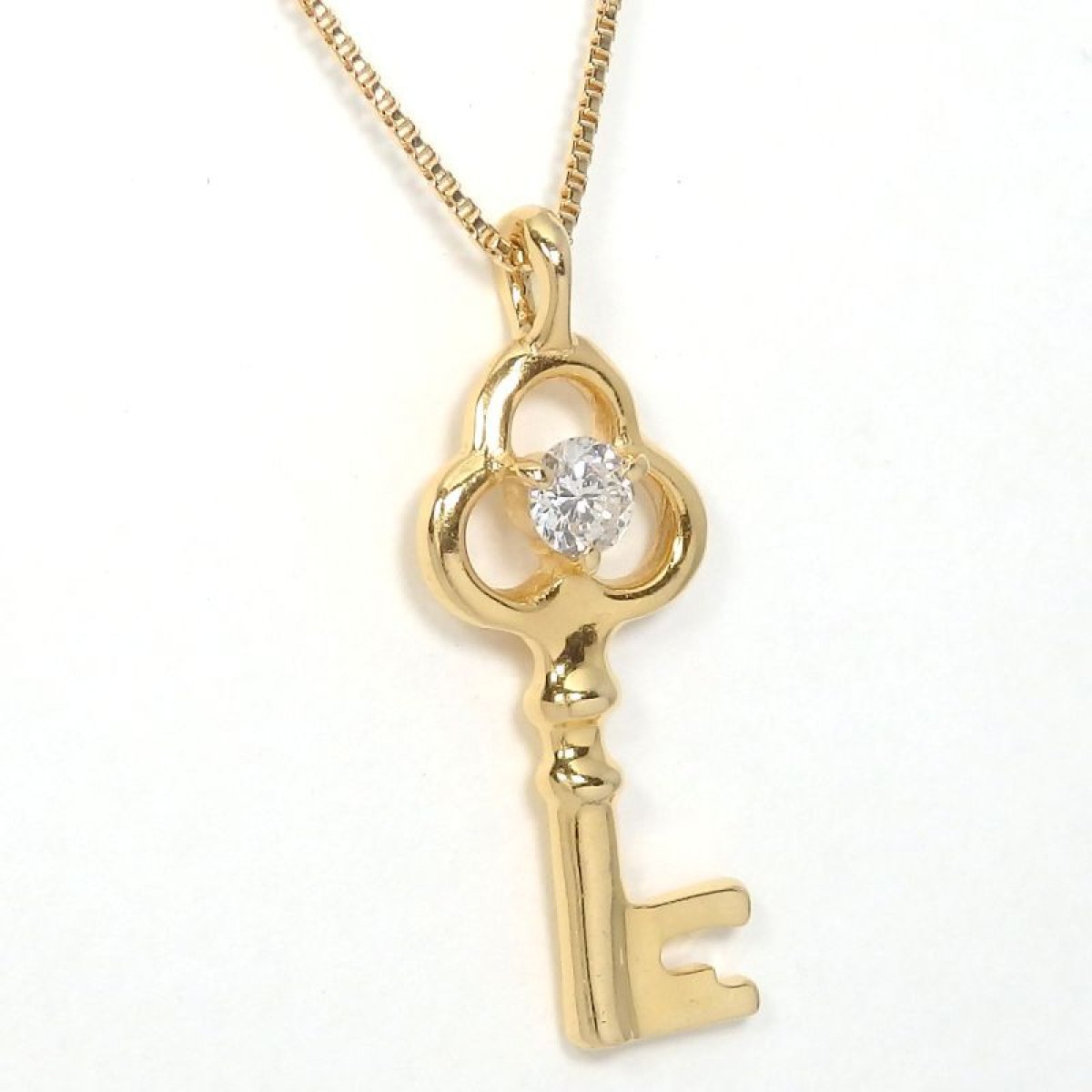 K18 ゴールド ダイヤモンド 0.13ct ペンダント付ネックレス カギ 中古 美品 レディース ジュエリー ダイヤ 質屋