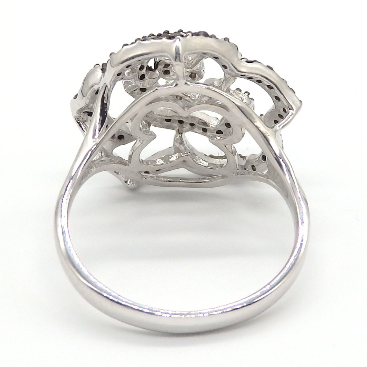 ≪K18WG ホワイトゴールド ブラックダイヤモンド 0.27ct ダイヤモンド 0.06ct 指輪 新品仕上済 美品 フラワー 薔薇 4月誕生石 中古 リング ジュエリー レディース ダイヤ ブラックダイヤ 質屋≫